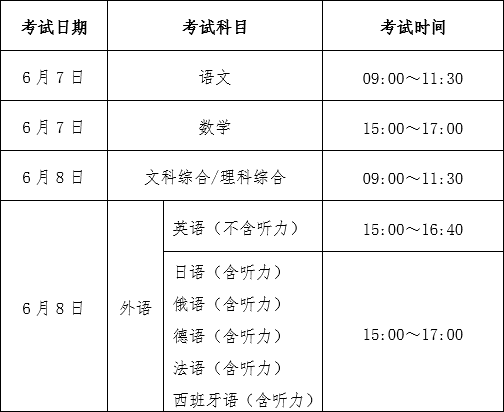 云南省2023年普通高考和三校生考试时间表