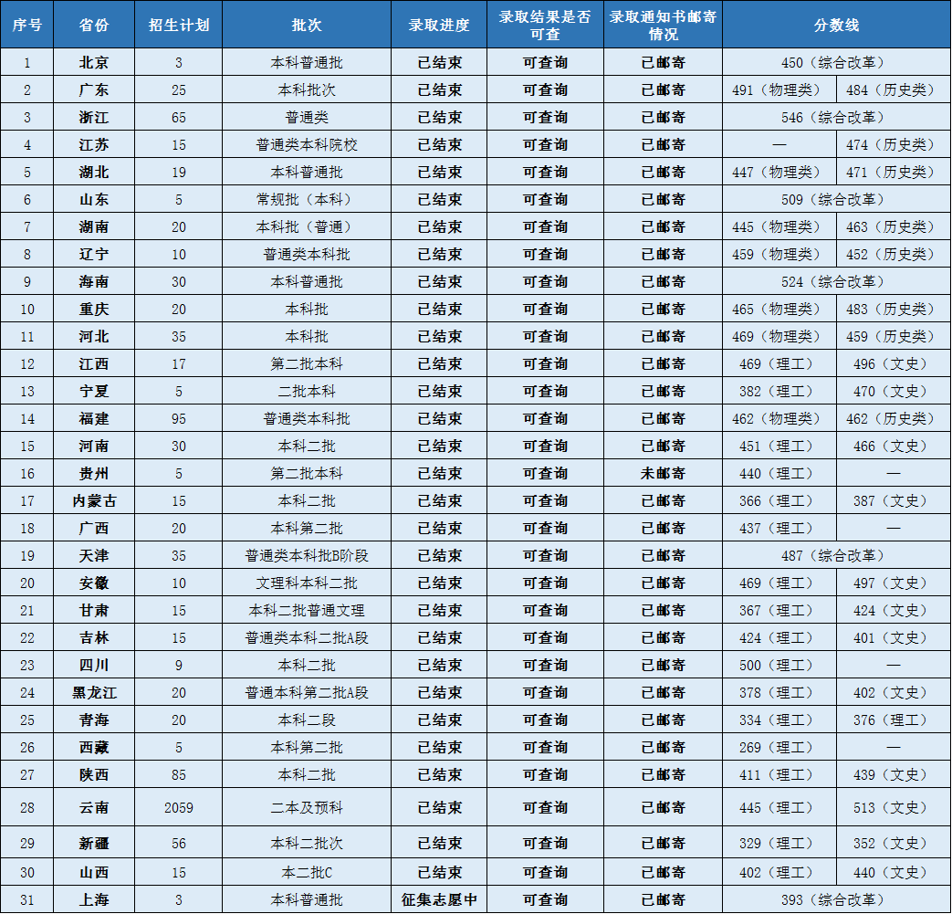 昆明医科大学海源学院2022年普通本科招生进度一览表